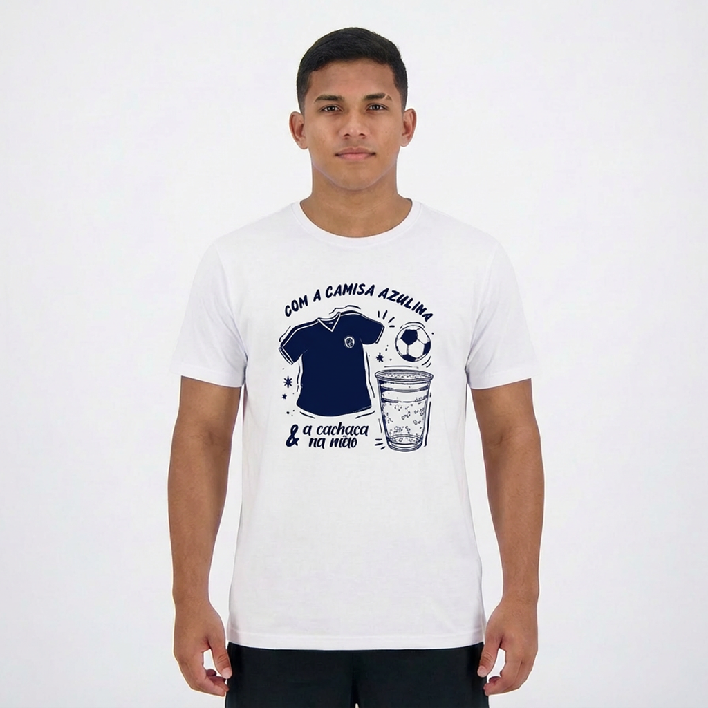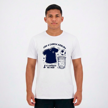 T-shirt Com a Camisa Azulina e a Cachaça na Mão - Branca
